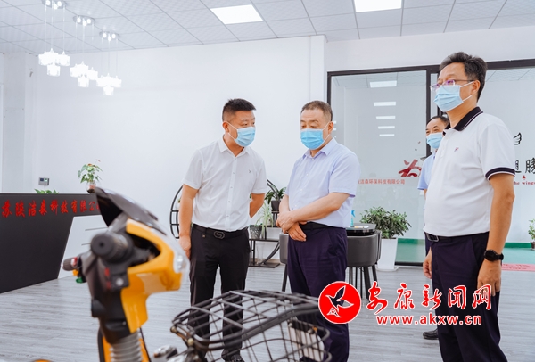 市長(zhǎng)武文罡(左二)在蘇陜杰森環(huán)?萍脊菊{(diào)研