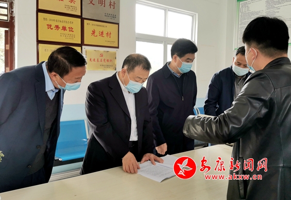 市長武文罡(左二)在嵐皋縣民主鎮(zhèn)新喜村村委會檢查脫貧攻堅成果鞏固情況TUm安康新聞網(wǎng)
