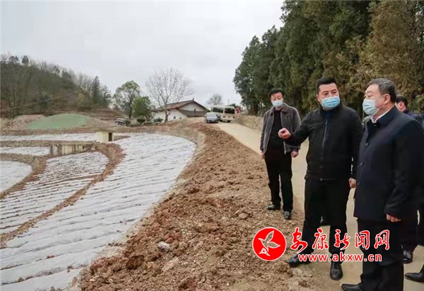 (武文罡在漢濱區(qū)瀛湖鎮(zhèn)郭家河村調研高標準農田建設情況)