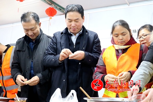 隨后,趙俊民來到項目部職工食堂,與大家一起包餃子、慶佳節(jié)。歡聲笑語中,大家一邊享受美食,一邊與家人視頻連線,大家紛紛表示,一定將市領(lǐng)導(dǎo)的關(guān)懷和問候轉(zhuǎn)化為加快建設(shè)的動力,為早日實現(xiàn)安康人民的藍(lán)天夢貢獻(xiàn)力量。