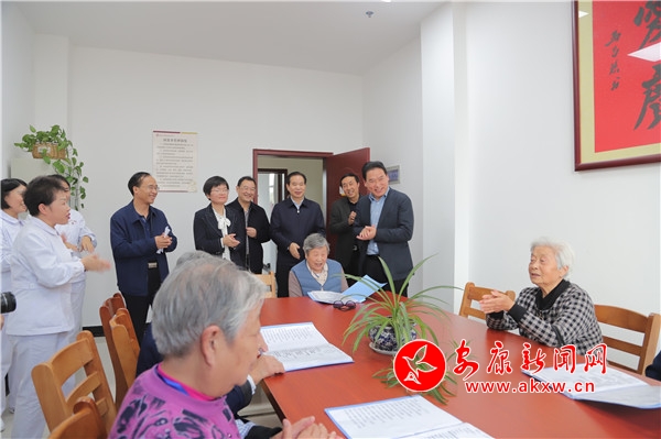 漢濱區(qū)陽光護理院,秋日和煦、窗明幾凈,五彩繽紛的小風車隨風輕動,一派安逸恬靜的幸福景象。趙俊民拉著老人們的手親切詢問:“老人家,身體好健旺!住在這里感覺怎么樣?”老人連聲稱道:“好哇,好哇!吃得好,住得好,環(huán)境好,還有一幫老伙伴,大家都很開心!”看到老人們紅光滿面、精神矍鑠,趙俊民對護理院的工作予以充分肯定,要求大家要做到愛心、細心、耐心,努力為老人們營造更好的生活環(huán)境。WPi安康新聞網(wǎng)