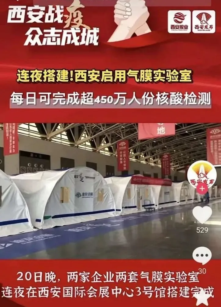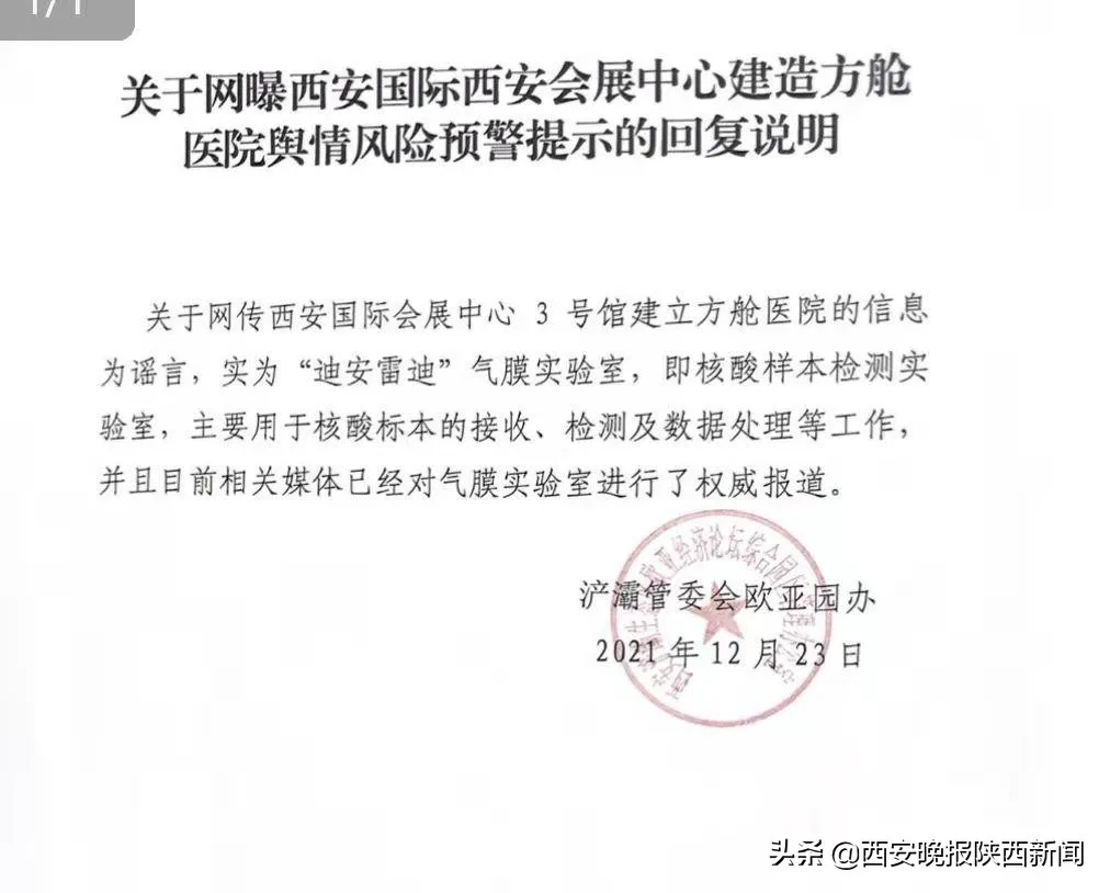 近日,短視頻平臺有網(wǎng)民發(fā)視頻稱“西安國際會展中心正在建方艙醫(yī)院”,經(jīng)核實(shí),該信息為謠言,實(shí)為“迪安雷迪”氣膜實(shí)驗(yàn)室,用于核酸檢測工作。ZVg安康新聞網(wǎng)