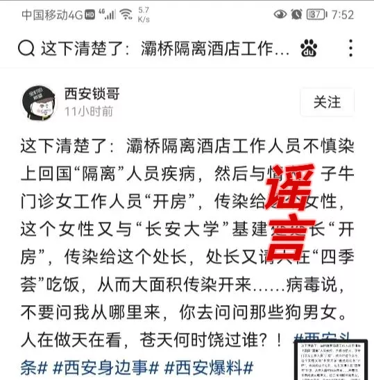 謠言信息截圖:ZVg安康新聞網(wǎng)