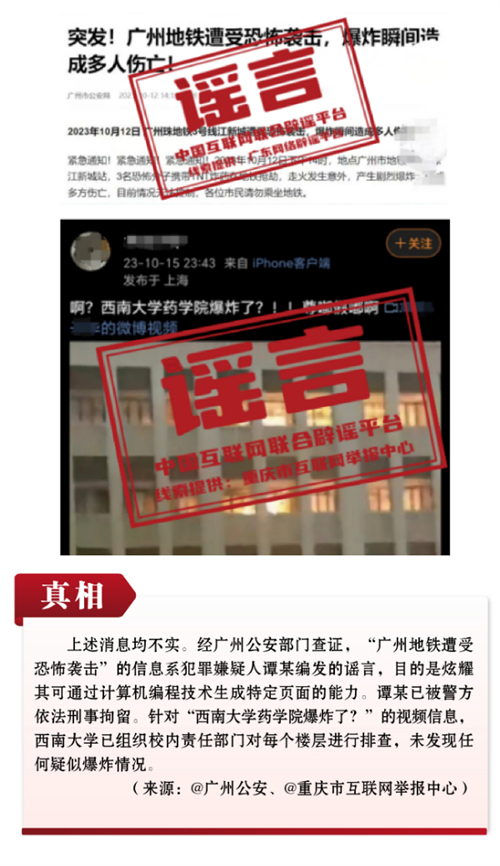 ——中國互聯網聯合辟謠平臺2023年10月辟謠榜綜述