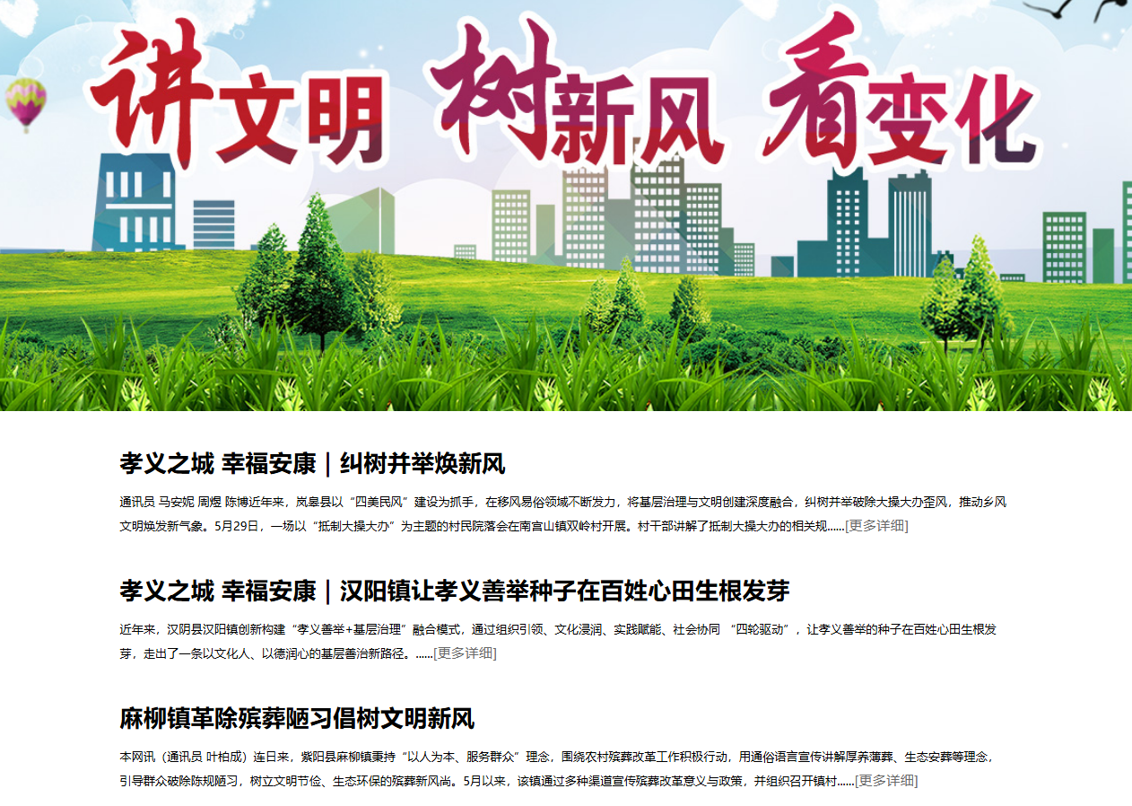 開設(shè)“講文明 樹新風(fēng) 看變化”“抵制高額彩禮 倡導(dǎo)文明婚俗”“道德模范·身邊好人”“孝義善舉·幸福安康”等專欄,刊出“溫暖的回響”系列稿件。x9P安康新聞網(wǎng)
