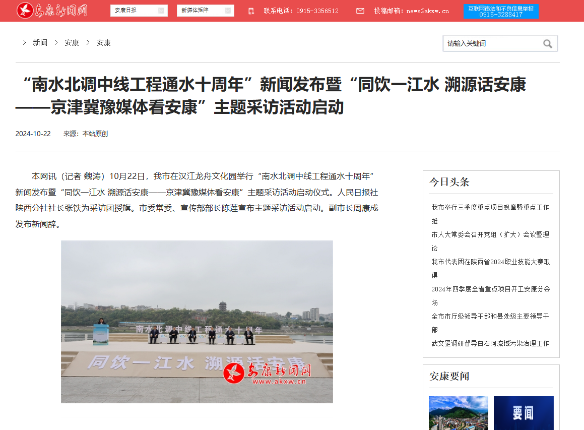 《“南水北調(diào)中線工程通水十周年”新聞發(fā)布暨“同飲一江水 溯源話安康——京津冀豫媒體看安康”主題采訪活動(dòng)啟動(dòng)》(2024-10-22發(fā)布)x9P安康新聞網(wǎng)