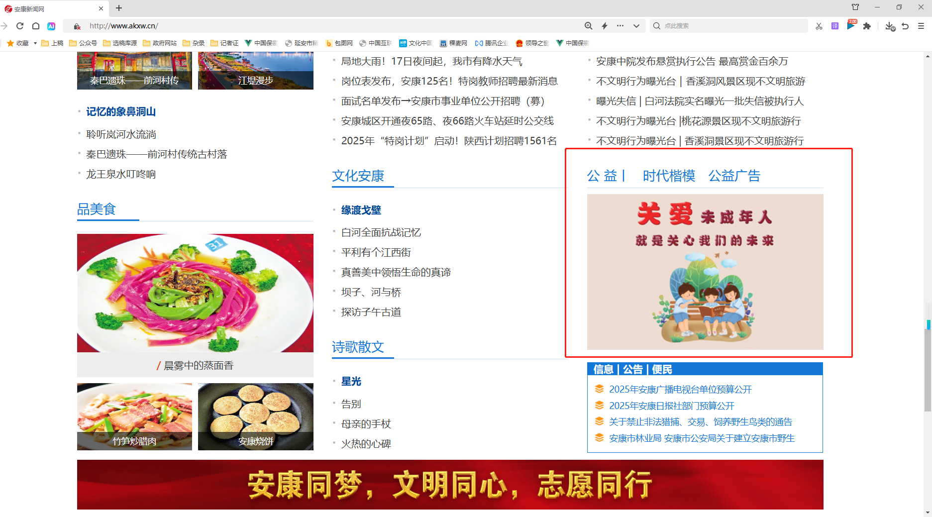 安康新聞網(wǎng)站首頁“公益”模塊x9P安康新聞網(wǎng)