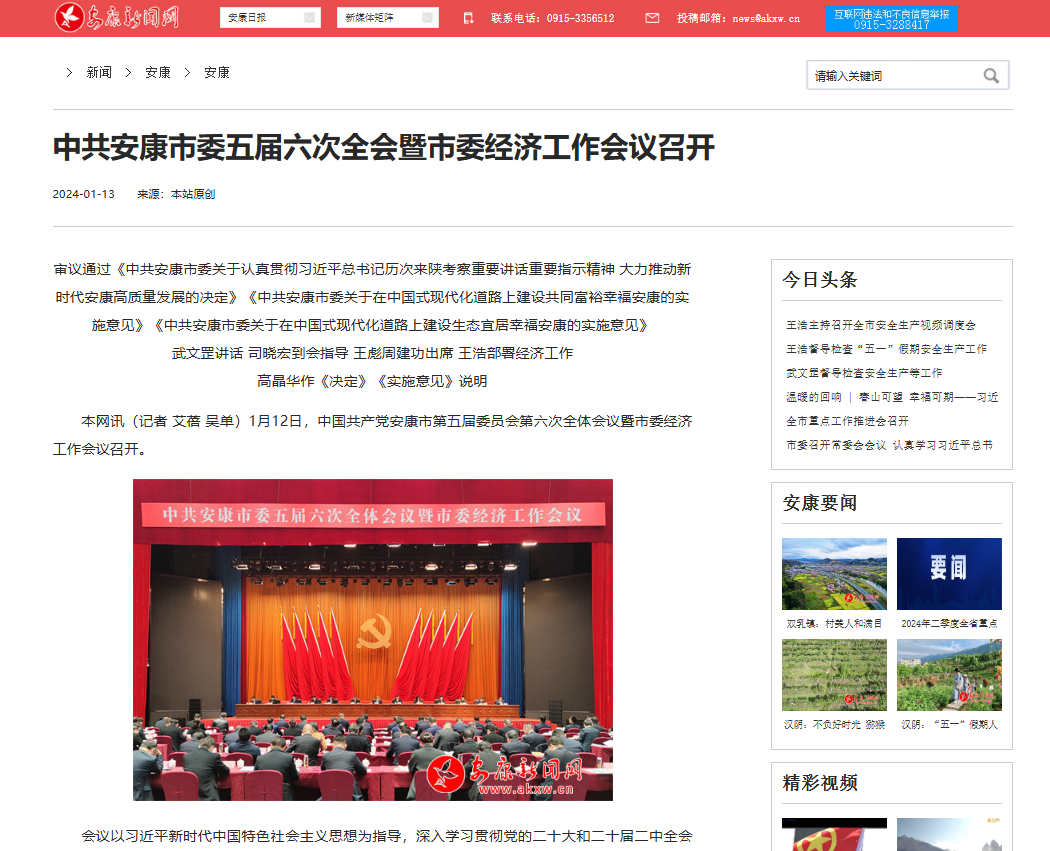 《中共安康市委五屆六次全會暨市委經(jīng)濟(jì)工作會議召開》(2024-01-13發(fā)布)x9P安康新聞網(wǎng)