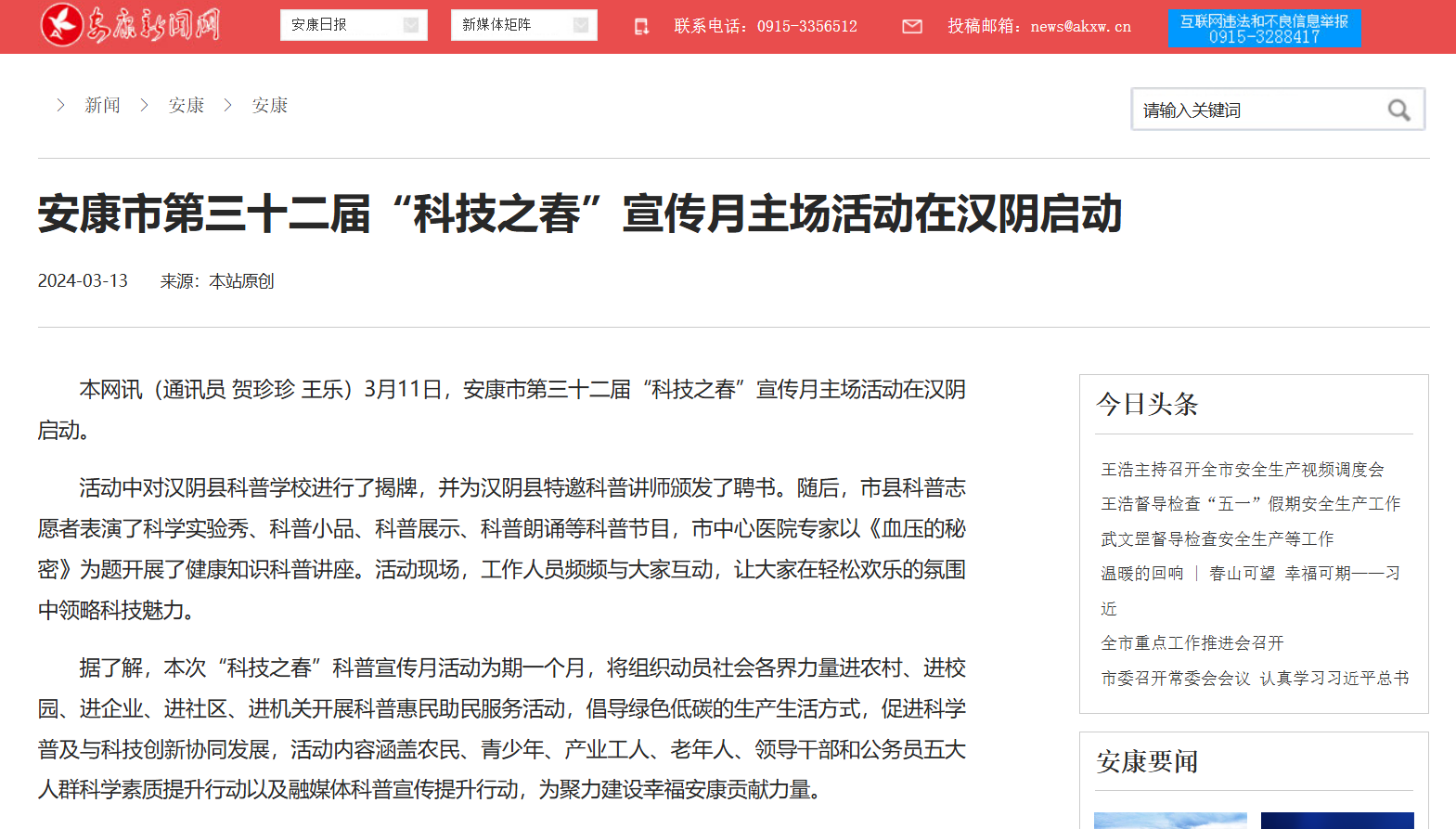 《安康市第三十二屆“科技之春”宣傳月主場活動(dòng)在漢陰啟動(dòng)》(2024-03-13發(fā)布)x9P安康新聞網(wǎng)
