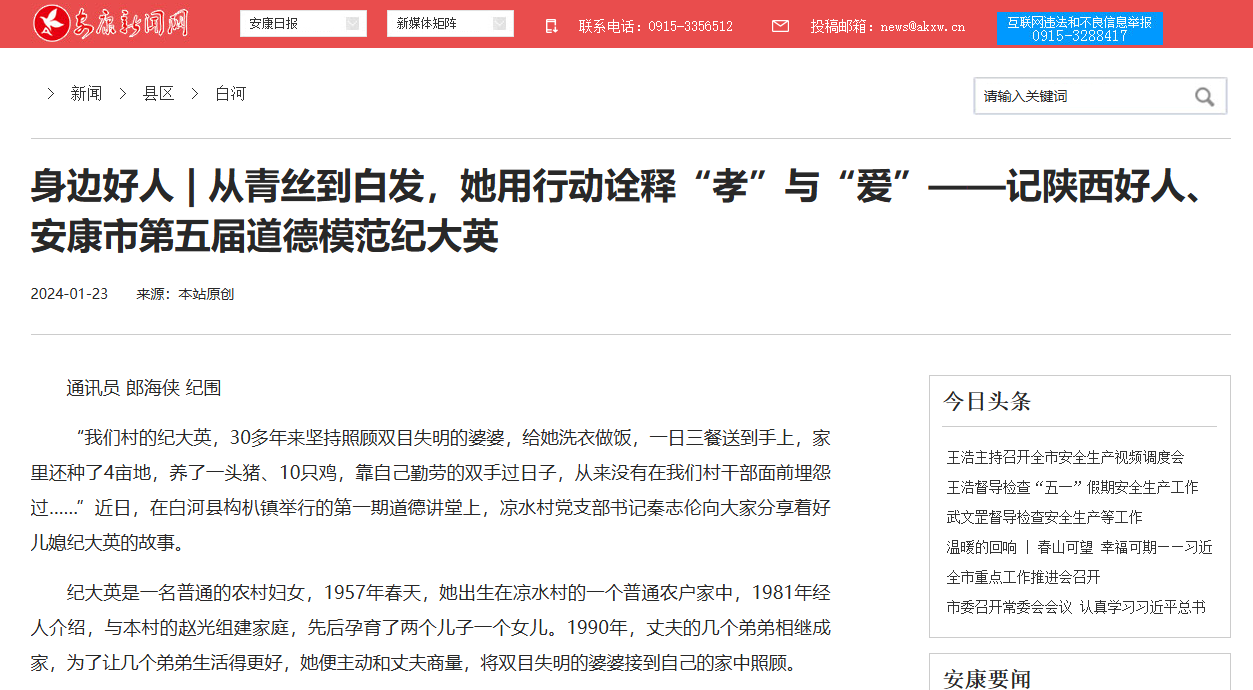 《身邊好人 | 從青絲到白發(fā),她用行動(dòng)詮釋“孝”與“愛”——記陜西好人、安康市第五屆道德模范紀(jì)大英》(2024-01-23發(fā)布)x9P安康新聞網(wǎng)