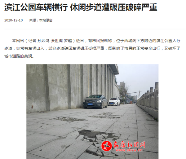 安康新聞網(wǎng)積極履行媒體輿論監(jiān)督職能,開(kāi)設(shè)有“曝光臺(tái)”欄目,主要刊發(fā)市紀(jì)委通報(bào)的典型問(wèn)題。2020年,聚焦民生問(wèn)題,刊發(fā)了《出門(mén)停車(chē)難,回家車(chē)位貴——安康中心城區(qū)物業(yè)小區(qū)停車(chē)問(wèn)題調(diào)查》《“限塑令”下,小小塑料袋緣何依然“橫行”?》《健康就餐:我市推行“分餐制”進(jìn)展調(diào)查》《電動(dòng)車(chē)充電,何時(shí)才能不“飛線(xiàn)”?》等一批原創(chuàng)新聞,反映群眾呼聲,積極推進(jìn)問(wèn)題解決,體現(xiàn)地方黨媒的責(zé)任與擔(dān)當(dāng)。