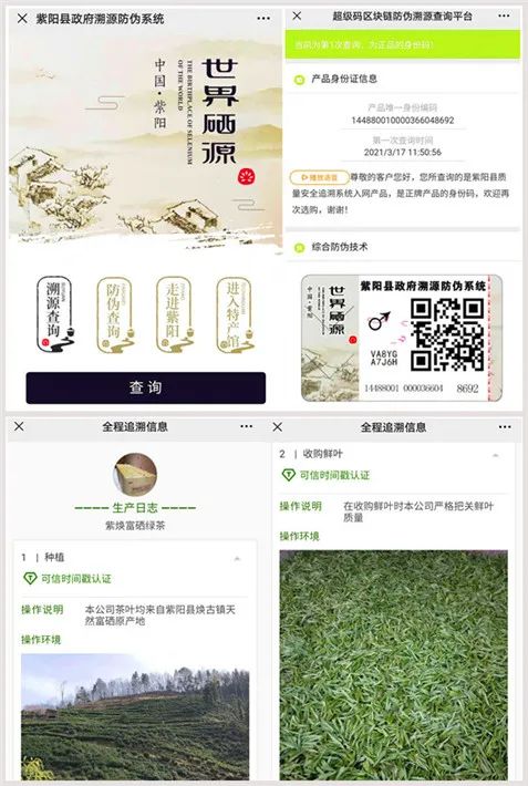 紫陽縣建立了紫陽茶溯源系統(tǒng),利用區(qū)塊鏈、一品一碼等技術(shù),為紫陽茶制作獨(dú)一無二的溯源檔案,生成唯一的溯源二維碼,通過手機(jī)掃描產(chǎn)品包裝上的二維碼,即可快速通過圖片、實(shí)時監(jiān)控視頻等方式,查看紫陽茶從茶園、生產(chǎn)加工、檢測等全程溯源檔案信息。 Pky安康新聞網(wǎng)