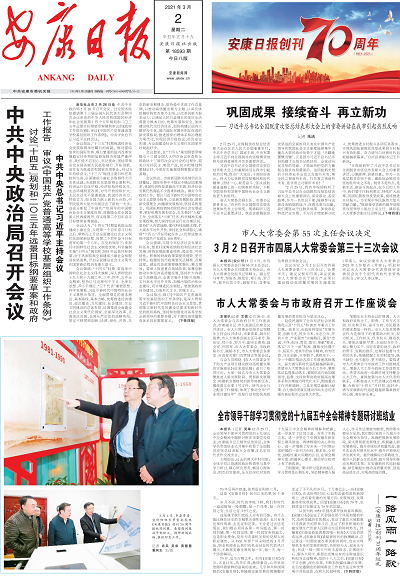 2021年是中國(guó)共產(chǎn)黨建黨100周年,是“十四五”規(guī)劃開局之年,是開啟全面建設(shè)社會(huì)主義現(xiàn)代化國(guó)家新征程、向第二個(gè)百年奮斗目標(biāo)進(jìn)軍之年。站在兩個(gè)一百年的歷史交匯處,又恰逢《安康日?qǐng)?bào)》創(chuàng)刊70周年,安康日?qǐng)?bào)全媒體站位主動(dòng),守正創(chuàng)新,積極發(fā)揮黨媒應(yīng)有的作為。