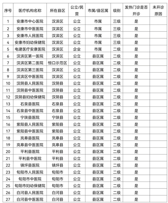 安康市二級(jí)以上醫(yī)療機(jī)構(gòu)發(fā)熱門(mén)診點(diǎn)位
