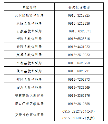 安康市義務(wù)教育招生入學(xué)工作咨詢投訴電話