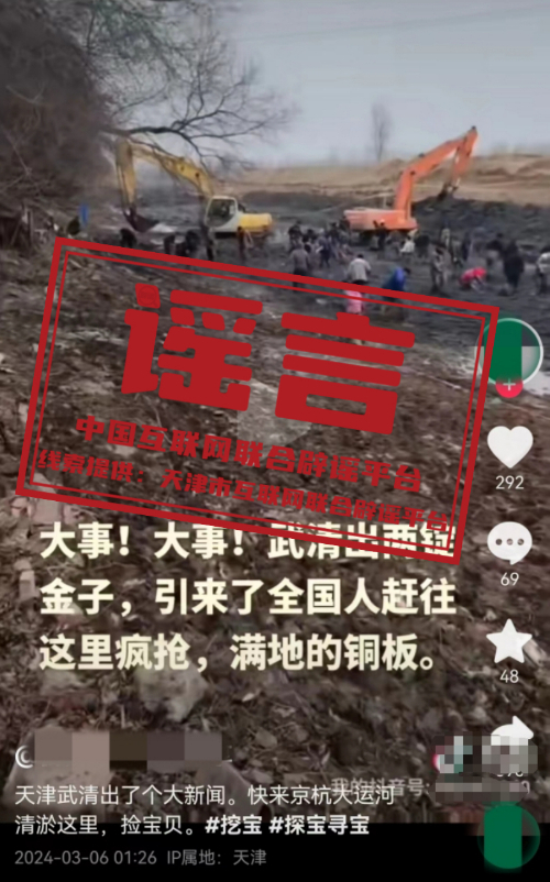 謠言:天津武清北運河城區(qū)段清淤挖出寶?XiP安康新聞網(wǎng)