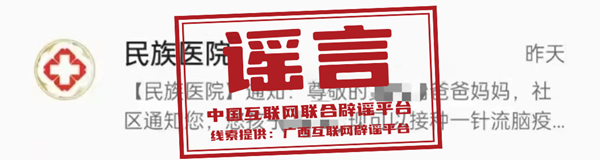 謠言:廣西壯族自治區(qū)民族醫(yī)院發(fā)布關(guān)于流腦疫苗接種通知?sm2安康新聞網(wǎng)