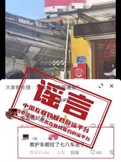 謠言:濟(jì)南一門店坍塌,救護(hù)車?yán)似甙塑嚕?/strong>