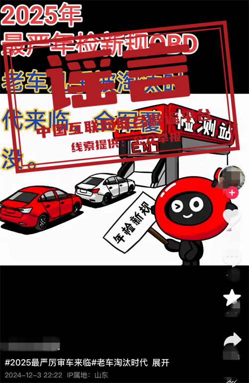 真相:近日,多個(gè)自媒體賬號發(fā)布消息,宣稱“史上最嚴(yán)車檢來了”“車檢年限變化”“燃油車年檢增加OBD檢測”等。中央廣電總臺中國之聲記者多方求證了解到,上述說法均為不實(shí)消息,目前各地車檢并沒有新變化。2kQ安康新聞網(wǎng)
