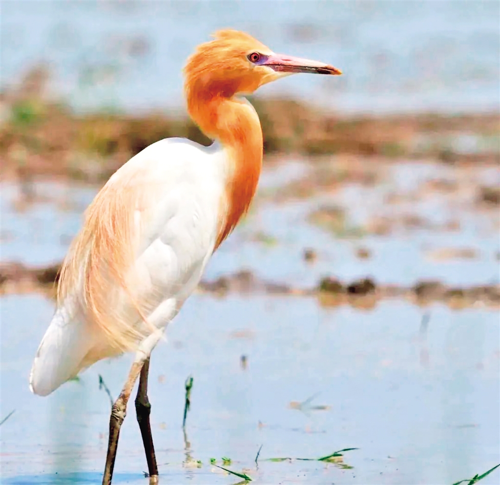 夏羽大都白色;頭和頸橙黃色,前頸基部和背中央具羽枝分散成發(fā)狀的橙黃色長形飾羽;前頸飾羽長達胸部,背部飾羽向后長達尾部,尾和其余體羽白色。冬羽通體全白色,個別頭頂綴有黃色,無發(fā)絲狀飾羽。橙黃色的喙長、尖而直,較側(cè)扁、尖端多有小鋸齒;翅較寬長,前頸的基部和背部中央具有羽枝分散成發(fā)狀的橙黃色長飾羽、前頸的飾羽長達胸部,背部的飾羽向后長達尾部。牛背鷺喜歡站在牛背上或跟隨在耕田的牛后面啄食翻出來的昆蟲和牛背上的寄生蟲等,因此得名。(來源:安康市林學(xué)會)n3p安康新聞網(wǎng)