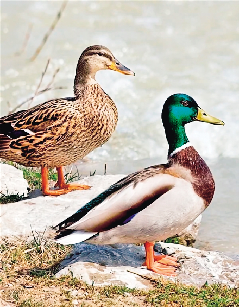 又名野鴨。雄鳥頭綠色,有一白色領環(huán),胸栗色,翼鏡藍綠色,尾上、下覆羽黑色,嘴黃綠色,腳橙紅色;雌鳥嘴橙黃色,貫眼紋黑褐色,全體褐色,有暗褐色斑紋。(來源:安康市林學會)aQ4安康新聞網(wǎng)