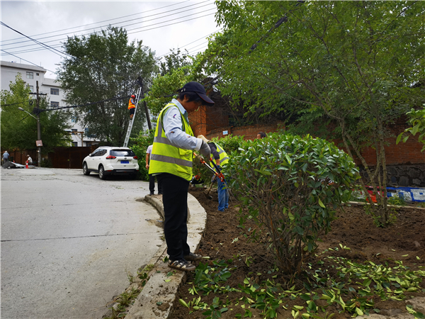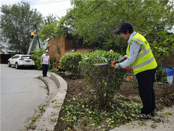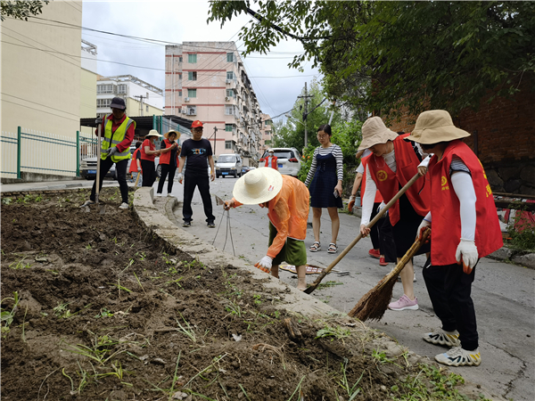 7月23日,前張嶺社區(qū)志愿者和高新綠化工人聯(lián)手整治群眾占用的街心花園。(陳小勇)