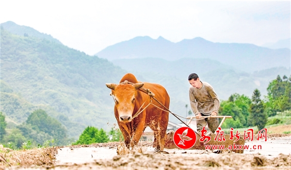 村民趕著牛在稻田里犁地4sF安康新聞網(wǎng)