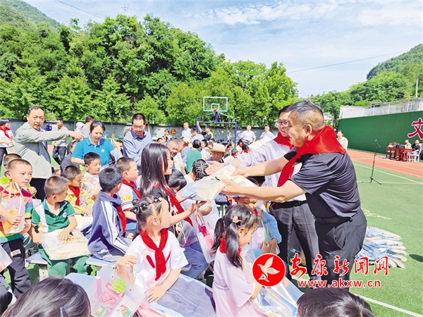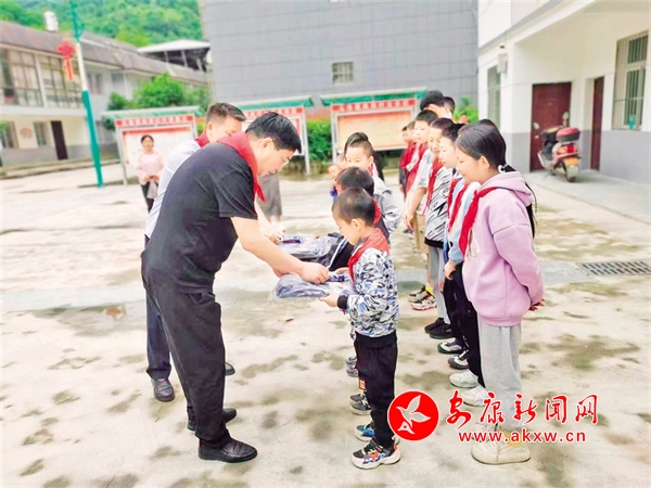 平利縣審計(jì)局聯(lián)合興隆鎮(zhèn)蒙溪街小學(xué)開展“六一”送關(guān)愛活動,為蒙溪街小學(xué)全體學(xué)生送去夏秋季校服。彭書梅 攝iSs安康新聞網(wǎng)