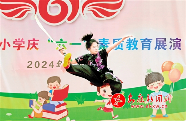 平利縣各小學(xué)、幼兒園開展多種活動,喜迎“六一”國際兒童節(jié)。圖為平利縣城關(guān)小學(xué)的學(xué)生在表演武術(shù)。沈奕君 攝iSs安康新聞網(wǎng)