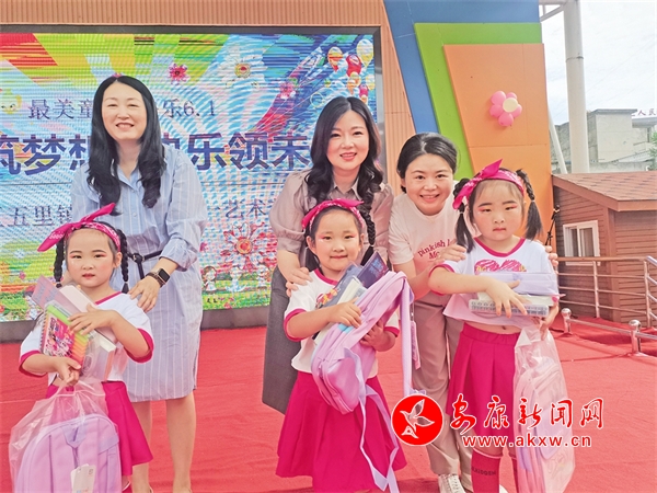 漢濱區(qū)稅務(wù)局為五里鎮(zhèn)幼兒園的小朋友送去書包等文具慰問品。陳榮斌 攝iSs安康新聞網(wǎng)