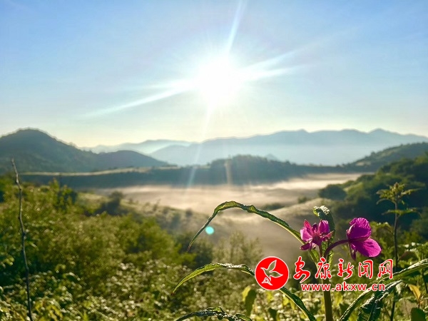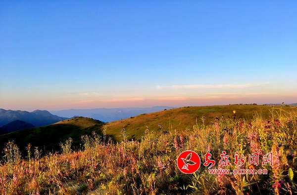 甸內(nèi)不知名的小花爭(zhēng)相綻放。遠(yuǎn)觀整個(gè)草甸呈現(xiàn)出一片朦朦朧朧的粉綠,置身其中,會(huì)感覺到一種無比浪漫的溫馨。iYr安康新聞網(wǎng)