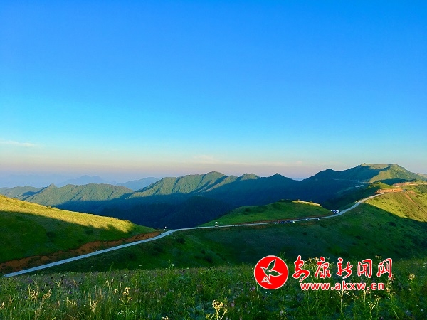 極目遠(yuǎn)眺,連綿的青山,玉帶似得盤山公路蜿蜒起伏。坡麓平緩,無垠無際,宛如一幅美妙的畫作。iYr安康新聞網(wǎng)
