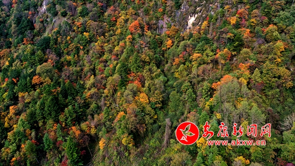 金秋十月,清風送爽。寧陜縣境內(nèi)的平河梁自然保護區(qū)層林盡染,讓人不禁感謝大自然的饋禮,陶醉于這美景之中,一眼望去滿眼色彩斑斕,秋日山色美不勝收。(楊寧 攝)5z7安康新聞網(wǎng)
