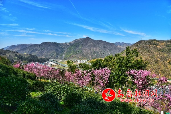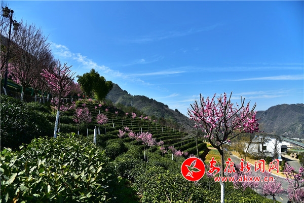 連日來,春光明媚的平利長安洪福茶山風景宜人,春梅、杏花競相開放。(攝影:王韜)