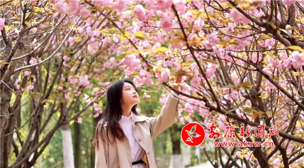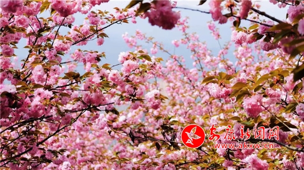 近日,在漢陰縣龍崗公園,成片的櫻花競(jìng)相開放,形成一片紅粉為主、白色點(diǎn)綴的爛漫花海,美不勝收,給春天增添了一抹浪漫色彩。