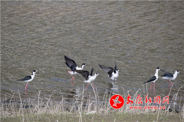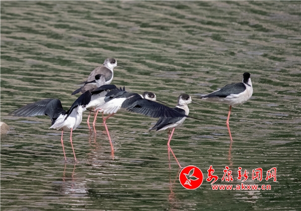 隨著漢陰縣生態(tài)環(huán)境的改善,越來越多的候鳥駐足該縣覓食、棲息。近日,在漢陰縣人工湖內(nèi),一群黑翅長腳鷸時(shí)而空中飛翔,時(shí)而淺灘處嬉戲覓食,受到了鳥類攝影愛好者的關(guān)注。黑翅長腳鷸,體羽由黑白兩色構(gòu)成,其紅色的腳細(xì)而長,顏值頗高。(圖文/尹正軍 黃智發(fā) 賀珍珍) CuZ安康新聞網(wǎng)