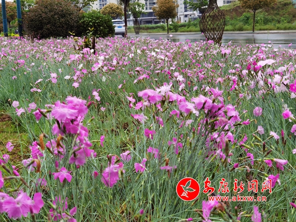 最美人間四月天。4月22日,陰雨綿綿,漢陰縣花月灣迎賓公園步道邊月季花、蝴蝶花、石竹子花綻放,在蒙蒙細雨的滋潤下,格外妖嬈,市民漫步其中,悠然自得。(通訊員 林愛銘)HLW安康新聞網(wǎng)