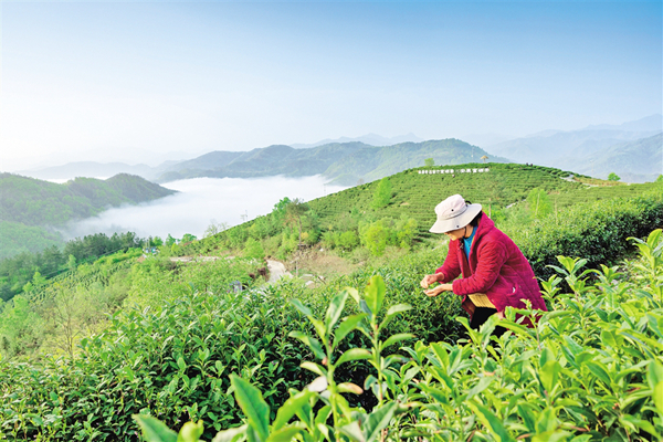 云海山上采茶女 夏玉琦 攝ACQ安康新聞網