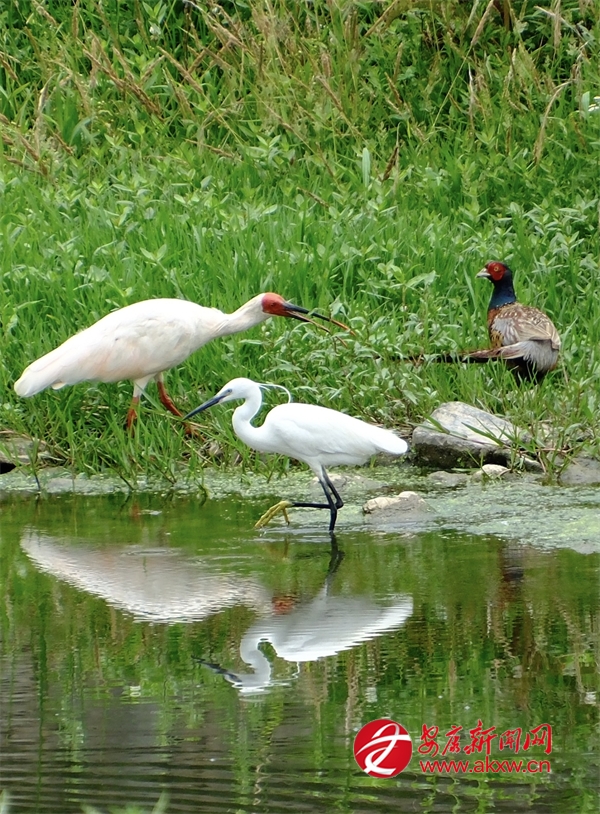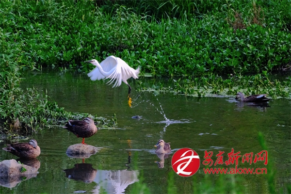 晨光熹微或夕照熔金時,朱鹮掠過荷塘,翅尖點(diǎn)水銜起游魚;蒼鷺與白鷺獨(dú)立淺灘,如雪影倒映清波;牛背鷺追逐耕牛腳步,驚起的草蟲成了它的盛宴;更有池鷺、黑水雞、環(huán)頸雉、白胸苦惡鳥穿梭林間,聲聲清啼與潺潺水韻交織,譜寫月河生生不息的生態(tài)樂章。5Ei安康新聞網(wǎng)