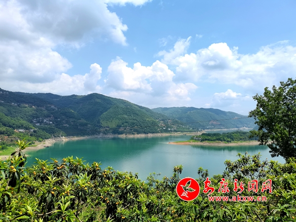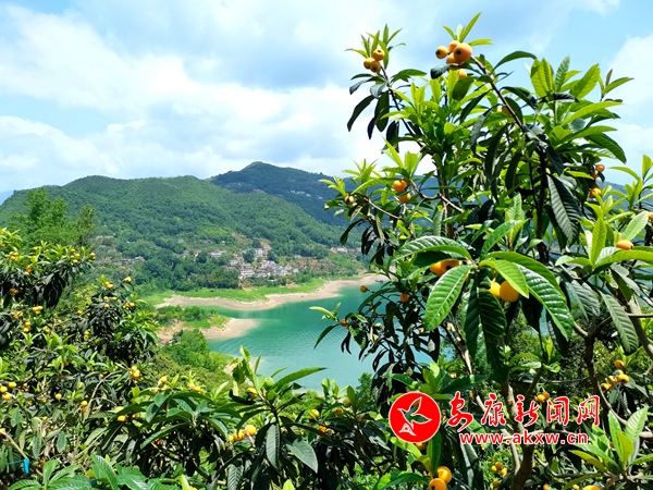 五月的瀛湖碧水藍天,綠意盎然,漫山遍野的金色枇杷掛滿枝頭,碩果累累,一派豐收的景象。瀛湖枇杷以汁多味美 、酸甜可口著稱,贏得市民和外地客商的青睞。(陳榮斌 攝)Nua安康新聞網(wǎng)