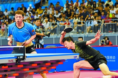 男雙決賽更是上演了一場世界級對決。京滬組合馬龍/許昕是2011年世乒賽冠軍,衛(wèi)冕冠軍周雨/樊振東也曾在2015年世乒賽中闖入決賽。最終,馬龍/許昕在決勝局中以9比11惜敗。賽后馬龍表示,本場比賽的含金量并不亞于世錦賽,“比賽中我甚至已經(jīng)想不起自己是在打全運會還是世界大賽了!