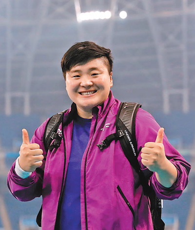 | 9月5日,鞏立姣在女子鉛球及格賽比賽前信心滿滿。 |