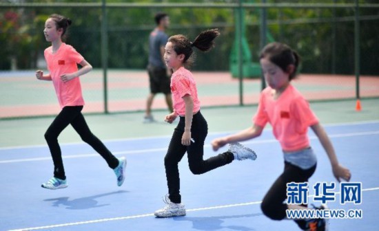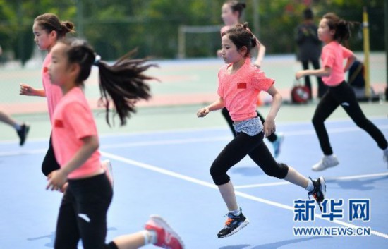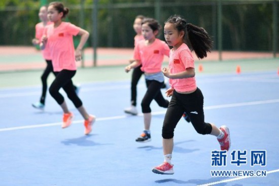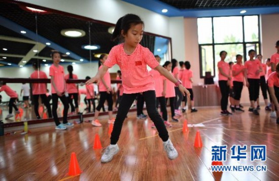 ↑小運(yùn)動(dòng)員們參加體能測(cè)試。新華社記者郭程攝