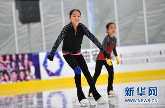 ↑小運(yùn)動(dòng)員們?cè)跍y(cè)試中。新華社記者郭程攝