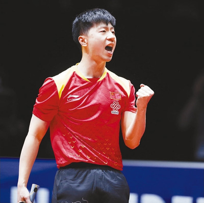 5月6日,中國隊(duì)選手馬龍?jiān)诒荣愔袘c祝。KiS安康新聞網(wǎng)