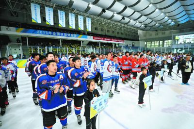 北京隊(duì)參加全國冰球錦標(biāo)賽開幕式。本報(bào)記者 饒強(qiáng)攝