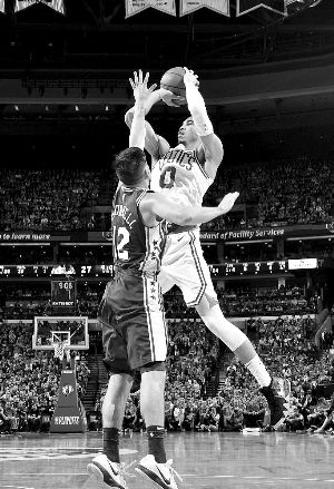 凱爾特人新秀塔特姆(右)在季后賽中表現(xiàn)驚艷。