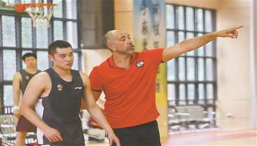 原標(biāo)題:廣州龍獅宣布 西班牙外教上任 胡安(右)帶隊(duì)展開(kāi)公開(kāi)訓(xùn)練課。(許蓓 攝) 西班牙籍教練胡安·安東尼奧·奧蘭加加盟廣州龍獅籃球俱樂(lè)……