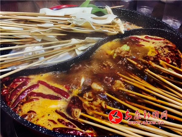 在市區(qū)靜寧農貿市場旁,有一家叫簽游記的串串店,冬天的夜色襯的這家店屋里霧氣騰騰,熱鬧非凡。小方桌、長凳子、香氣撲鼻的一鍋火鍋湯以及那一大把的竹簽,人們卸下笨重的大衣,把葷的、素的往鍋里一煮,等上幾分鐘便拿著竹簽大快朵頤,酣暢至極。r64安康新聞網(wǎng)