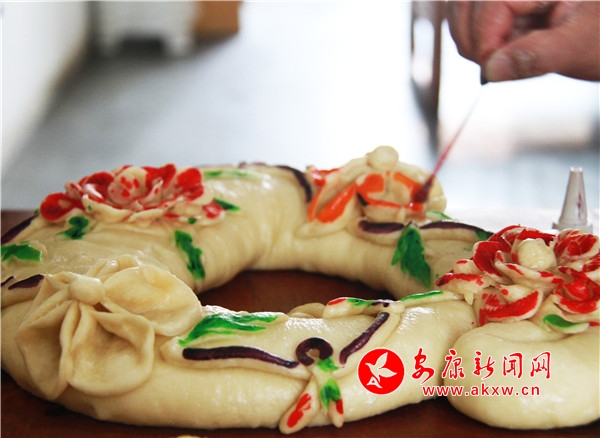 據(jù)了解,在安康本地常見的面塑有四種:第一種是生日滿月面塑,塑造成象征吉祥的植物、動物及人物形象,如雙魚、項圈等寓意為健康、平安、一帆風(fēng)順等。第二種是祝壽面塑,多為壽糕、壽桃造型。以祝健康長壽之意。第三種是喪葬祭祀面塑,用椌、塑、串各種手法蒸制成動、植物造型,如:龍、鳳、花鳥魚蟲等。施以紅黃綠重彩點染,稱為“供獻”,專用于亡靈的祭祀。第四種就是日常食用面塑,如油旋、麻花、點心、面角等。kQr安康新聞網(wǎng)